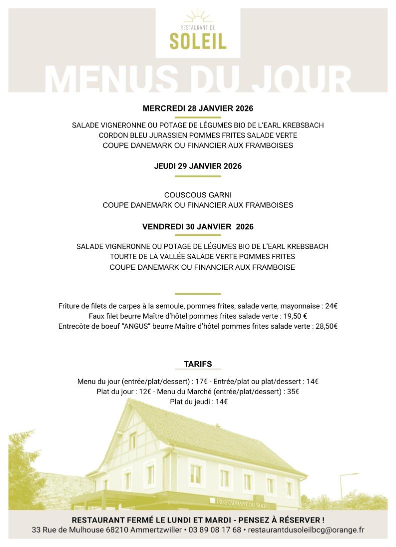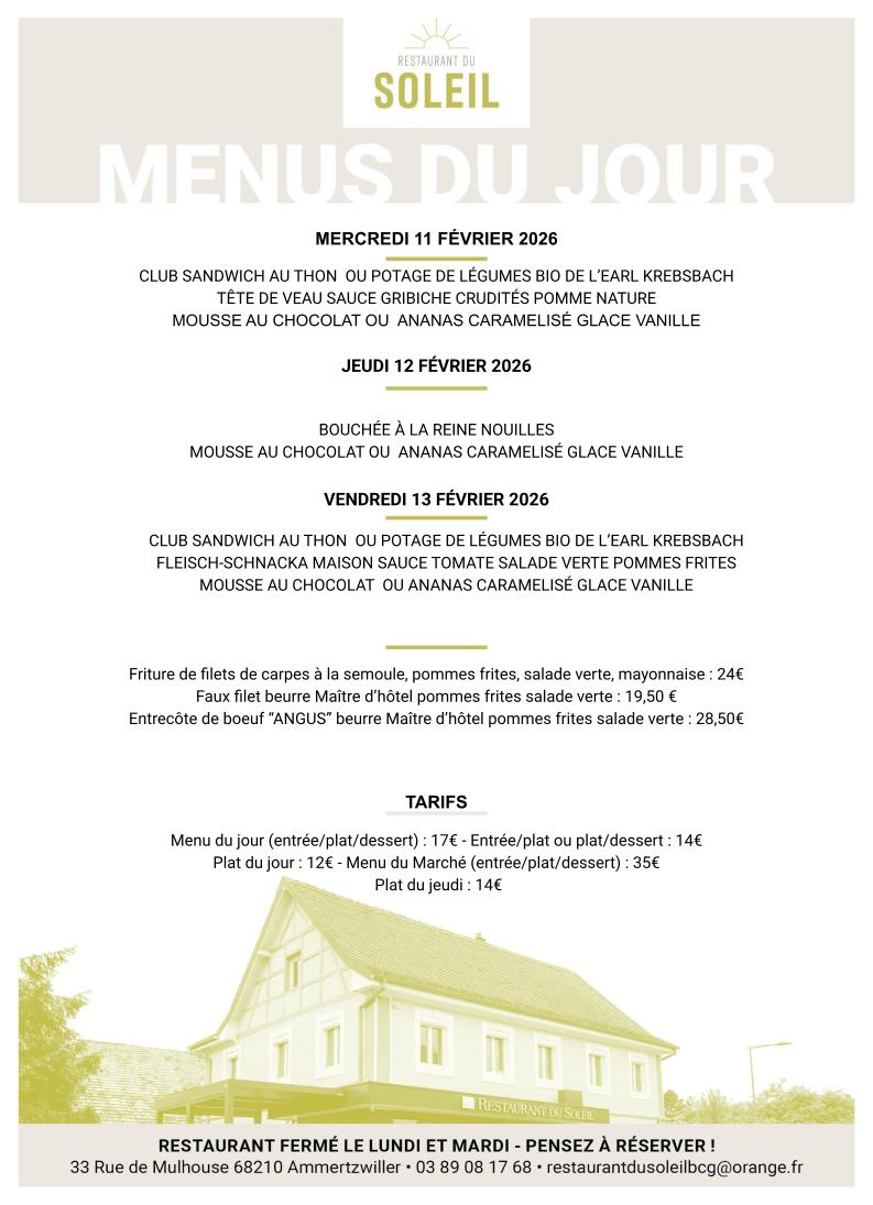LE RESTAURANT DU SOLEIL SERA FERMÉ DU LUNDI 16 FÉVRIER AU MERCREDI 25 FÉVRIER 2026