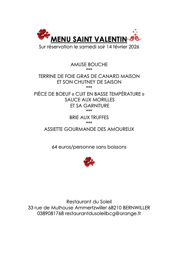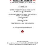 MENU SAINT VALENTIN SAMEDI 14 FÉVRIER 2026 AU SOIR SUR RÉSERVATION