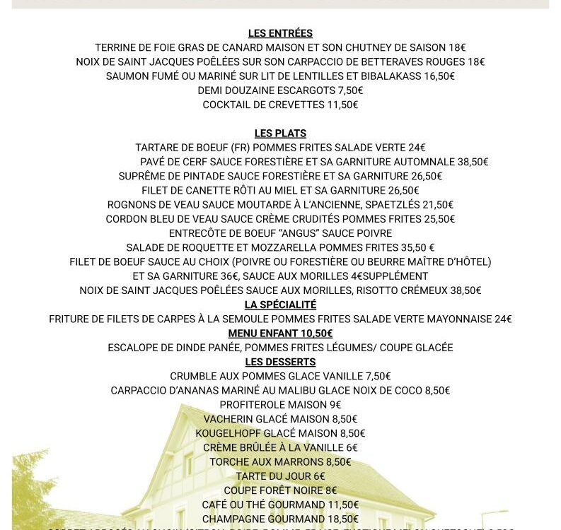 Menu du vendredi et samedi soirs